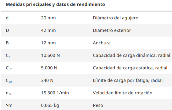 Rodamiento Bolas FAG 6004 20 X 42 X 12