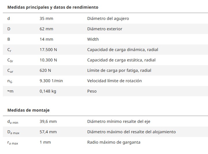 Rodamiento 35 x 62 x 14